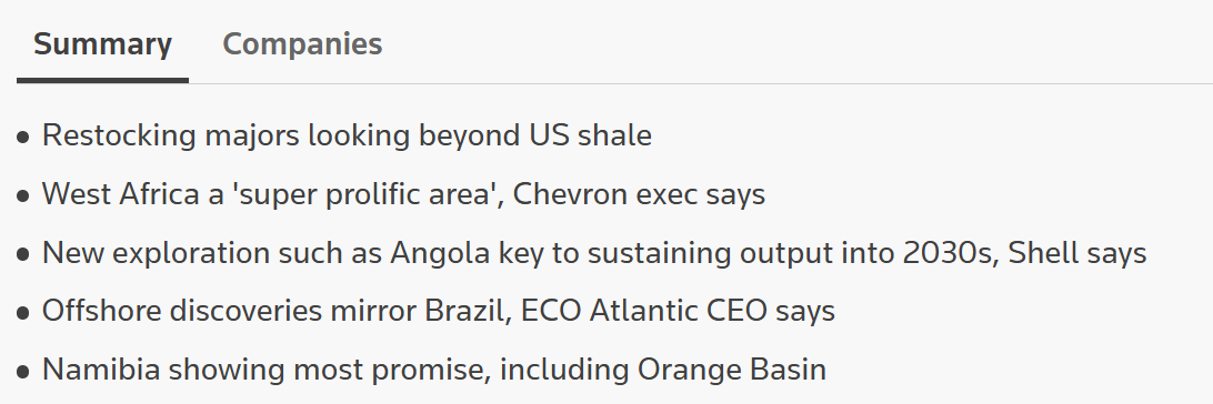 "Multiple major discoveries along the West African margin directly mirror successes in eastern South America, particularly offshore Brazil," he told Reuters.